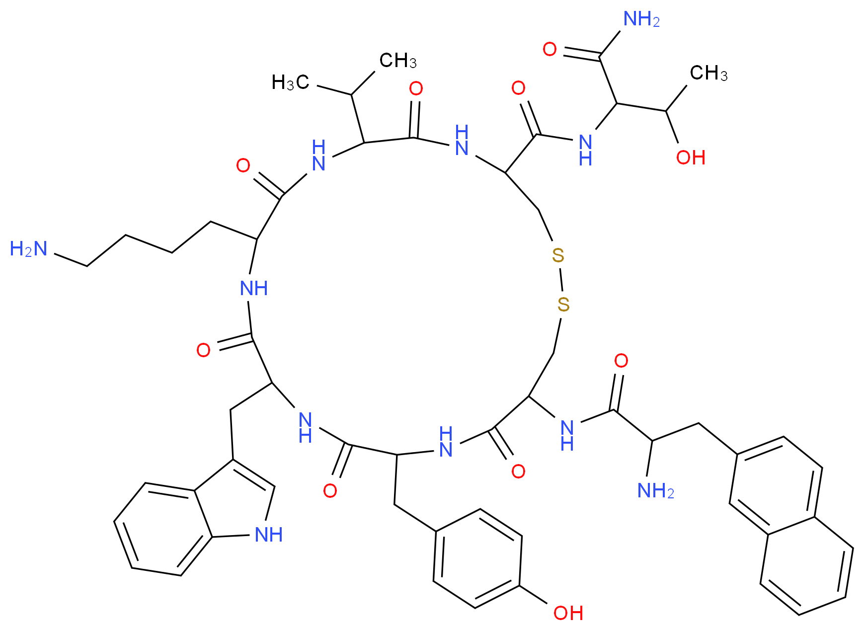 2-({19-[2-amino-3-(naphthalen-2-yl)propanamido]-10-(4-aminobutyl)-16-[(4-hydroxyphenyl)methyl]-13-(1H-indol-3-ylmethyl)-6,9,12,15,18-pentaoxo-7-(propan-2-yl)-1,2-dithia-5,8,11,14,17-pentaazacycloicosan-4-yl}formamido)-3-hydroxybutanamide