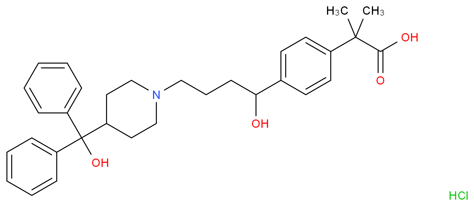 2-(4-{1-hydroxy-4-[4-(hydroxydiphenylmethyl)piperidin-1-yl]butyl}phenyl)-2-methylpropanoic acid hydrochloride