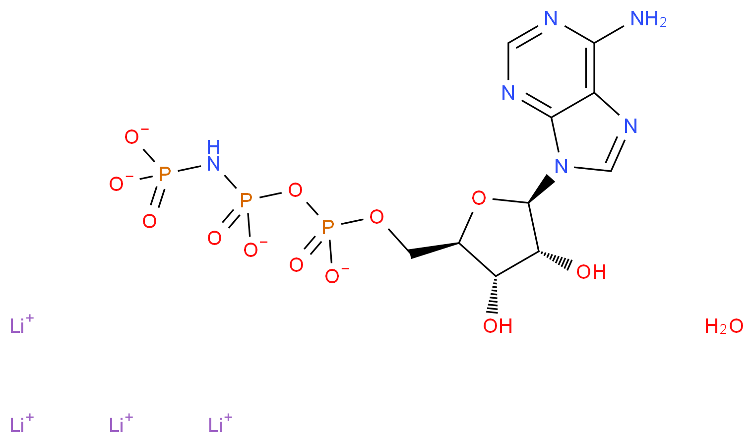 tetralithium(1+) ion hydrate {[({[(2R,3S,4R,5R)-5-(6-amino-9H-purin-9-yl)-3,4-dihydroxyoxolan-2-yl]methyl phosphonato}oxy)phosphinato]amino}phosphonate