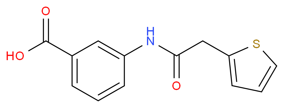 SMILES: C(=O)(Cc1sccc1)Nc1cc(C(=O)O)ccc1 Canonical SMILES: O=C(Cc1cccs1)Nc1cccc(c1)C(=O)O InChI: InChI=1S/C13H11NO3S/c15-12(8-11-5-2-6-18-11)14-10-4-1-3-9(7-10)13(16)17/h1-7H,8H2,(H,14,15)(H,16,17) InChIKey: QERCSVAAGLVTFH-UHFFFAOYSA-N