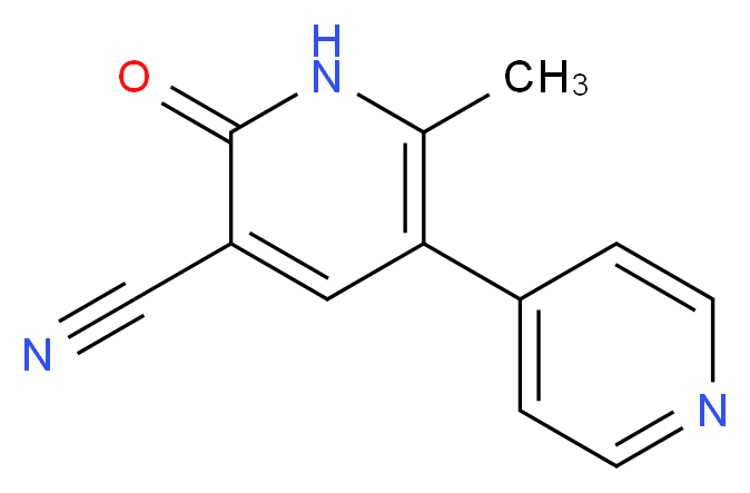 SMILES: O=c1[nH]c(c(c2ccncc2)cc1C#N)C Canonical SMILES: N#Cc1cc(c2ccncc2)c([nH]c1=O)C InChI: InChI=1S/C12H9N3O/c1-8-11(9-2-4-14-5-3-9)6-10(7-13)12(16)15-8/h2-6H,1H3,(H,15,16) InChIKey: PZRHRDRVRGEVNW-UHFFFAOYSA-N