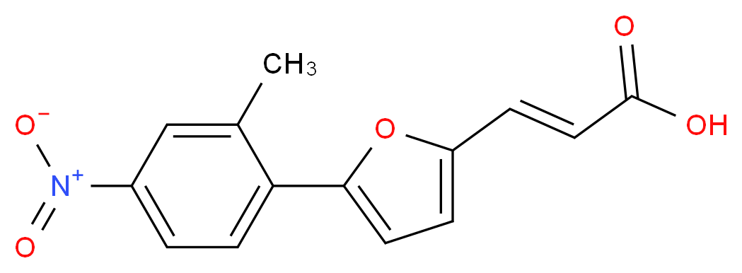 SMILES: [N+](=O)(c1cc(c(c2oc(cc2)/C=C/C(=O)O)cc1)C)[O-] Canonical SMILES: OC(=O)/C=C/c1ccc(o1)c1ccc(cc1C)[N+](=O)[O-] InChI: InChI=1S/C14H11NO5/c1-9-8-10(15(18)19)2-5-12(9)13-6-3-11(20-13)4-7-14(16)17/h2-8H,1H3,(H,16,17)/b7-4+ InChIKey: CGSJRTMBJMQGOB-QPJJXVBHSA-N