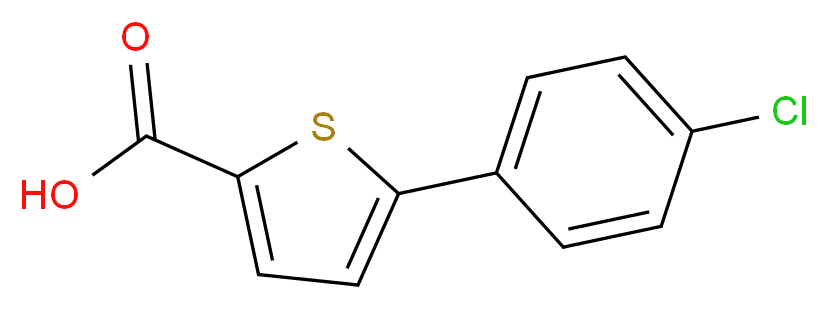SMILES: s1c(ccc1c1ccc(cc1)Cl)C(=O)O Canonical SMILES: Clc1ccc(cc1)c1ccc(s1)C(=O)O InChI: InChI=1S/C11H7ClO2S/c12-8-3-1-7(2-4-8)9-5-6-10(15-9)11(13)14/h1-6H,(H,13,14) InChIKey: GWLCYLPZQKOCTB-UHFFFAOYSA-N