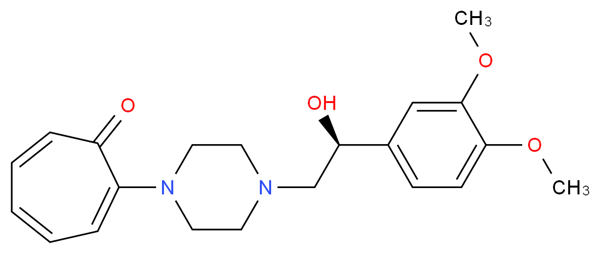SMILES: O=c1cccccc1N1CCN(C[C@@H](O)c2ccc(OC)c(OC)c2)CC1 Canonical SMILES: COc1ccc(cc1OC)[C@@H](CN1CCN(CC1)c1cccccc1=O)O InChI: InChI=1S/C21H26N2O4/c1-26-20-9-8-16(14-21(20)27-2)19(25)15-22-10-12-23(13-11-22)17-6-4-3-5-7-18(17)24/h3-9,14,19,25H,10-13,15H2,1-2H3/t19-/m1/s1 InChIKey: SGEKLKJQLHJVDK-LJQANCHMSA-N