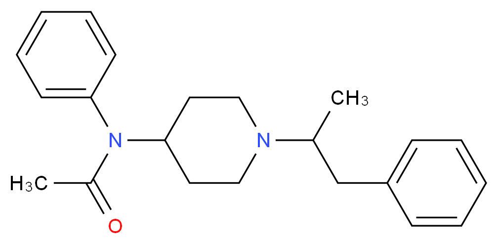 SMILES: O=C(N(C1CCN(CC1)C(Cc1ccccc1)C)c1ccccc1)C Canonical SMILES: CC(N1CCC(CC1)N(c1ccccc1)C(=O)C)Cc1ccccc1 InChI: InChI=1S/C22H28N2O/c1-18(17-20-9-5-3-6-10-20)23-15-13-22(14-16-23)24(19(2)25)21-11-7-4-8-12-21/h3-12,18,22H,13-17H2,1-2H3 InChIKey: OKTLVZBUKMRPLL-UHFFFAOYSA-N