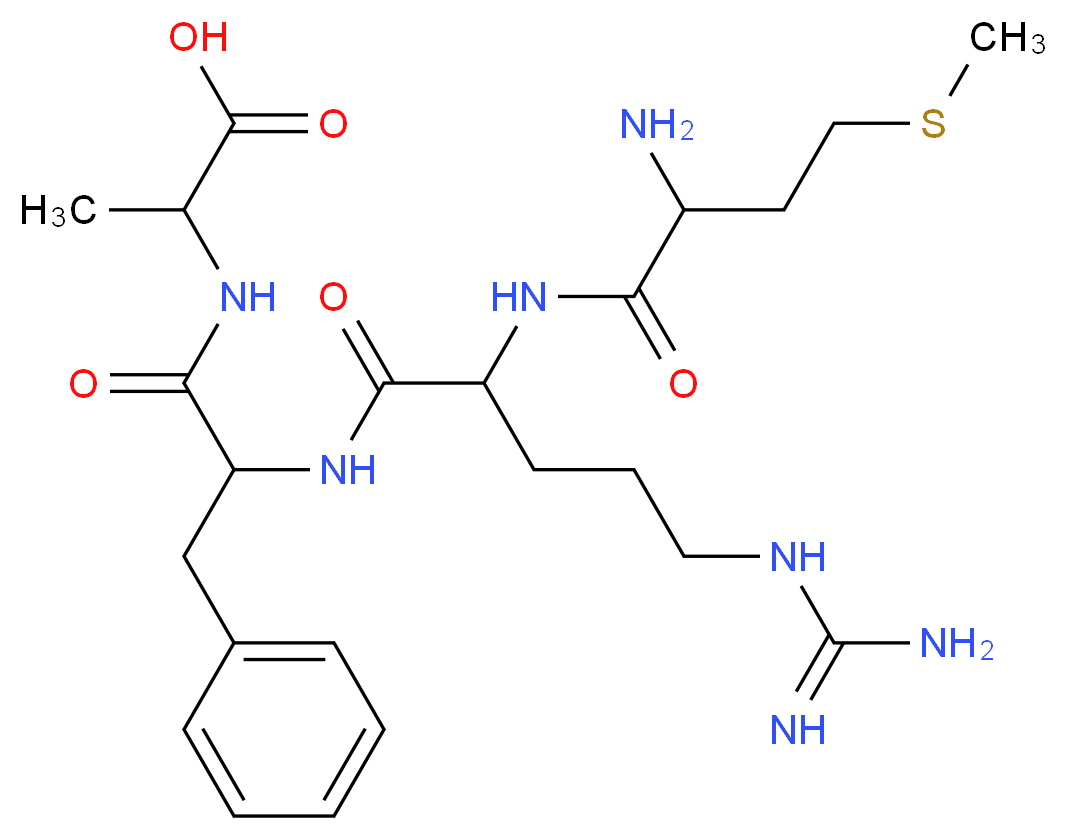 SMILES: CC(C(=O)O)NC(=O)C(Cc1ccccc1)NC(=O)C(CCCNC(=N)N)NC(=O)C(CCSC)N Canonical SMILES: CSCCC(C(=O)NC(C(=O)NC(C(=O)NC(C(=O)O)C)Cc1ccccc1)CCCNC(=N)N)N InChI: InChI=1S/C23H37N7O5S/c1-14(22(34)35)28-21(33)18(13-15-7-4-3-5-8-15)30-20(32)17(9-6-11-27-23(25)26)29-19(31)16(24)10-12-36-2/h3-5,7-8,14,16-18H,6,9-13,24H2,1-2H3,(H,28,33)(H,29,31)(H,30,32)(H,34,35)(H4,25,26,27) InChIKey: UWTASUKCZNGRDU-UHFFFAOYSA-N