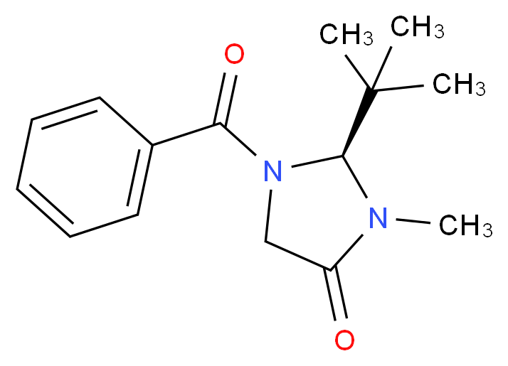 SMILES: CC(C)(C)[C@H]1N(C(=O)CN1C(=O)c1ccccc1)C Canonical SMILES: O=C1CN([C@H](N1C)C(C)(C)C)C(=O)c1ccccc1 InChI: InChI=1S/C15H20N2O2/c1-15(2,3)14-16(4)12(18)10-17(14)13(19)11-8-6-5-7-9-11/h5-9,14H,10H2,1-4H3/t14-/m0/s1 InChIKey: QMSFVKQUCYMTLD-AWEZNQCLSA-N