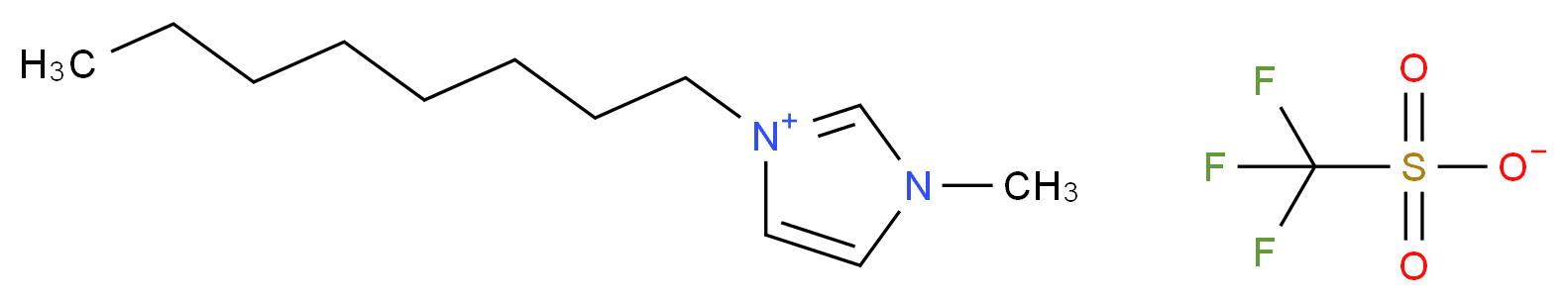 SMILES: CCCCCCCC[n+]1ccn(c1)C.C(F)(F)(F)S(=O)(=O)[O-] Canonical SMILES: FC(S(=O)(=O)[O-])(F)F.CCCCCCCC[n+]1ccn(c1)C InChI: InChI=1S/C12H23N2.CHF3O3S/c1-3-4-5-6-7-8-9-14-11-10-13(2)12-14;2-1(3,4)8(5,6)7/h10-12H,3-9H2,1-2H3;(H,5,6,7)/q+1;/p-1 InChIKey: BCVMAYRUJBXMAP-UHFFFAOYSA-M