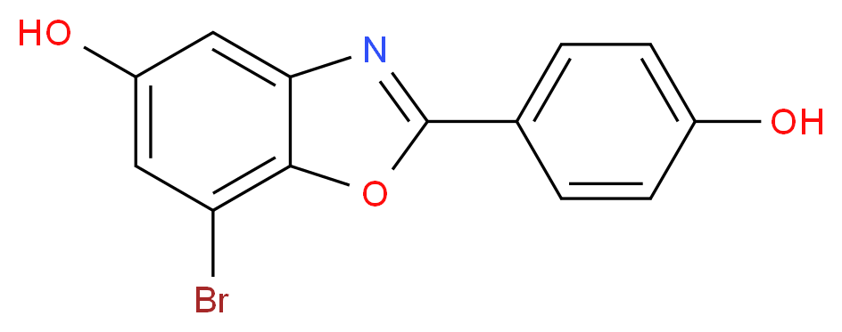 SMILES: c1cc(ccc1c1nc2cc(cc(c2o1)Br)O)O Canonical SMILES: Oc1ccc(cc1)c1oc2c(n1)cc(cc2Br)O InChI: InChI=1S/C13H8BrNO3/c14-10-5-9(17)6-11-12(10)18-13(15-11)7-1-3-8(16)4-2-7/h1-6,16-17H InChIKey: BAAILVWEAXFTSF-UHFFFAOYSA-N