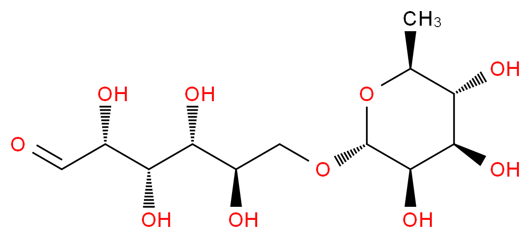 SMILES: C[C@H]1[C@@H]([C@H]([C@H]([C@@H](O1)OC[C@H]([C@H]([C@@H]([C@H](C=O)O)O)O)O)O)O)O Canonical SMILES: O=C[C@@H]([C@H]([C@@H]([C@@H](CO[C@@H]1O[C@@H](C)[C@@H]([C@H]([C@H]1O)O)O)O)O)O)O InChI: InChI=1S/C12H22O10/c1-4-7(16)10(19)11(20)12(22-4)21-3-6(15)9(18)8(17)5(14)2-13/h2,4-12,14-20H,3H2,1H3/t4-,5-,6+,7-,8+,9+,10+,11+,12+/m0/s1 InChIKey: CPYCUQCIDSHOHI-IFLAJBTPSA-N