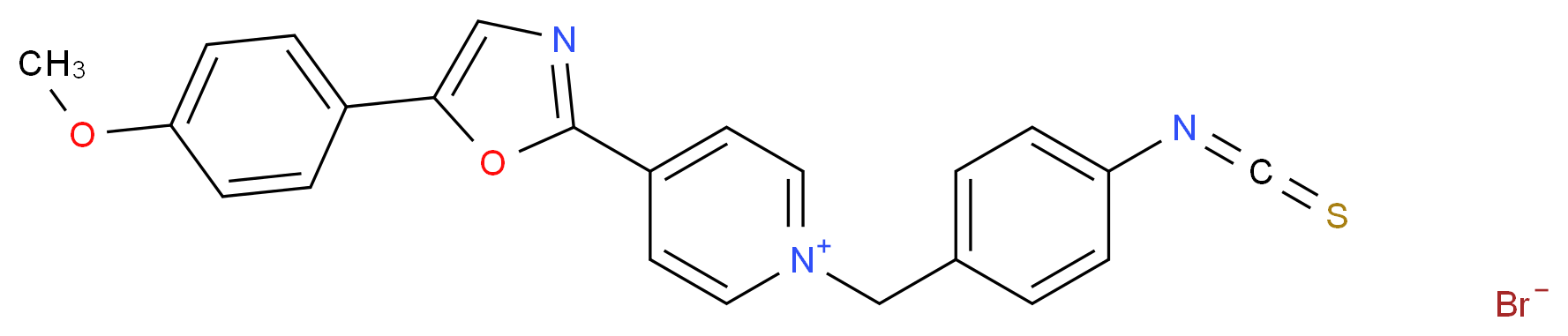SMILES: COc1ccc(cc1)c1cnc(o1)c1cc[n+](cc1)Cc1ccc(cc1)N=C=S.[Br-] Canonical SMILES: S=C=Nc1ccc(cc1)C[n+]1ccc(cc1)c1ncc(o1)c1ccc(cc1)OC.[Br-] InChI: InChI=1S/C23H18N3O2S.BrH/c1-27-21-8-4-18(5-9-21)22-14-24-23(28-22)19-10-12-26(13-11-19)15-17-2-6-20(7-3-17)25-16-29;/h2-14H,15H2,1H3;1H/q+1;/p-1 InChIKey: DMAVLRVUKGJFEU-UHFFFAOYSA-M