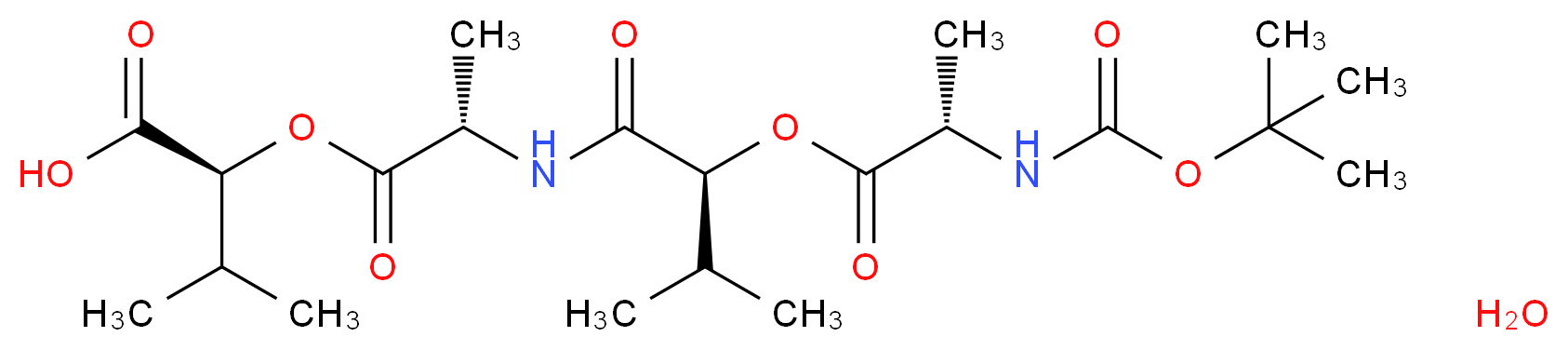 SMILES: C[C@@H](C(=O)O[C@@H](C(C)C)C(=O)O)NC(=O)[C@H](C(C)C)OC(=O)[C@H](C)NC(=O)OC(C)(C)C.O Canonical SMILES: O=C(OC(C)(C)C)N[C@H](C(=O)O[C@H](C(=O)N[C@H](C(=O)O[C@H](C(=O)O)C(C)C)C)C(C)C)C.O InChI: InChI=1S/C21H36N2O9.H2O/c1-10(2)14(30-19(28)13(6)23-20(29)32-21(7,8)9)16(24)22-12(5)18(27)31-15(11(3)4)17(25)26;/h10-15H,1-9H3,(H,22,24)(H,23,29)(H,25,26);1H2/t12-,13-,14-,15-;/m0./s1 InChIKey: CARNRIDSPYICIM-WFGXUCIJSA-N