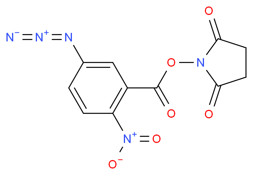 SMILES: c1cc(c(cc1N=[N+]=[N-])C(=O)ON1C(=O)CCC1=O)[N+](=O)[O-] Canonical SMILES: O=C(c1cc(ccc1[N+](=O)[O-])N=[N+]=[N-])ON1C(=O)CCC1=O InChI: InChI=1S/C11H7N5O6/c12-14-13-6-1-2-8(16(20)21)7(5-6)11(19)22-15-9(17)3-4-10(15)18/h1-2,5H,3-4H2 InChIKey: FUOJEDZPVVDXHI-UHFFFAOYSA-N