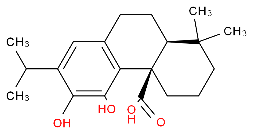 SMILES: CC(C)c1cc2c(c(c1O)O)[C@]1(CCCC([C@@H]1CC2)(C)C)C(=O)O Canonical SMILES: OC(=O)[C@@]12CCCC([C@@H]2CCc2c1c(O)c(c(c2)C(C)C)O)(C)C InChI: InChI=1S/C20H28O4/c1-11(2)13-10-12-6-7-14-19(3,4)8-5-9-20(14,18(23)24)15(12)17(22)16(13)21/h10-11,14,21-22H,5-9H2,1-4H3,(H,23,24)/t14-,20+/m0/s1 InChIKey: QRYRORQUOLYVBU-VBKZILBWSA-N
