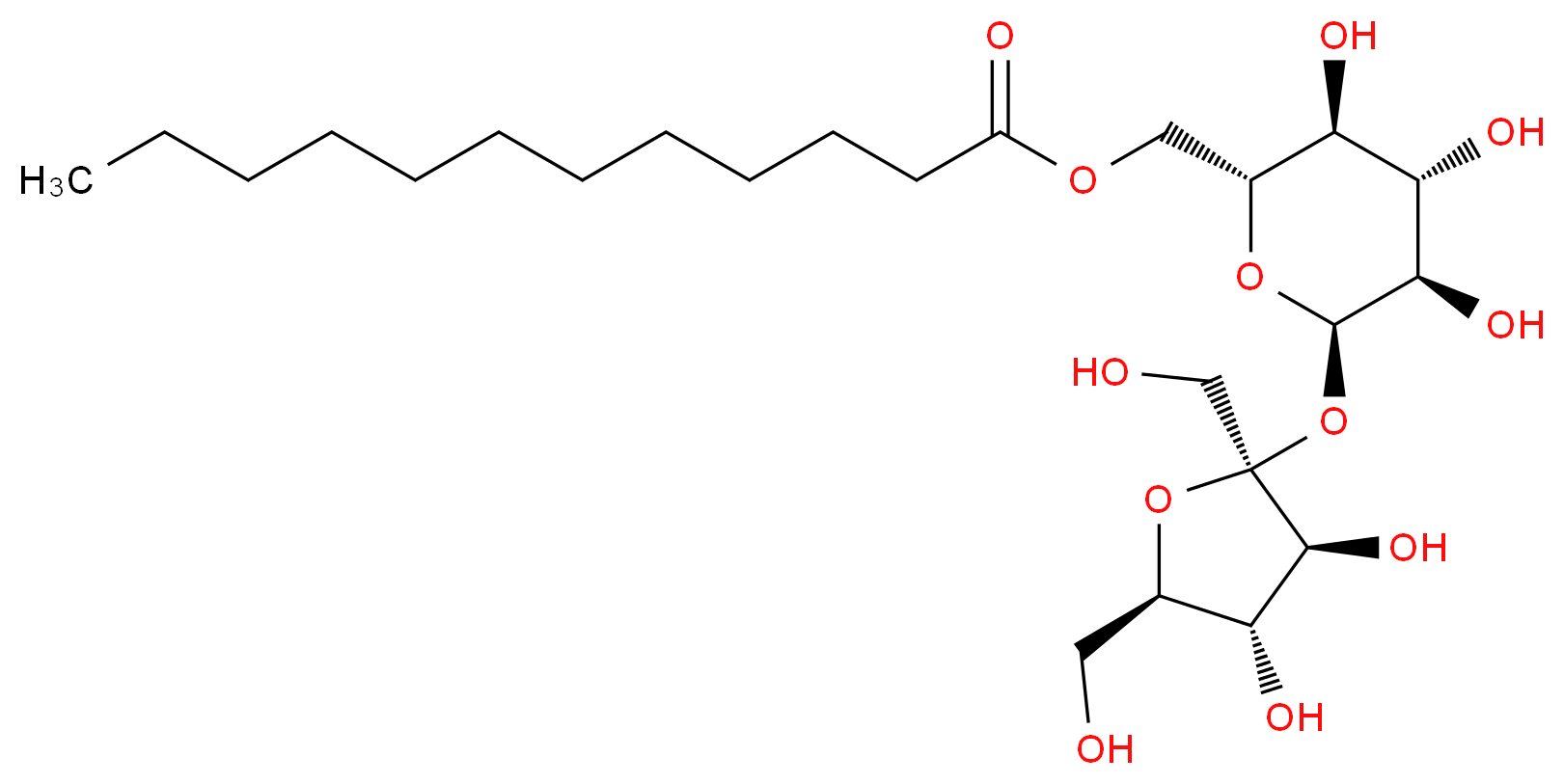 SMILES: CCCCCCCCCCCC(=O)OC[C@@H]1[C@H]([C@@H]([C@H]([C@H](O1)O[C@]1([C@H]([C@@H]([C@H](O1)CO)O)O)CO)O)O)O Canonical SMILES: CCCCCCCCCCCC(=O)OC[C@H]1O[C@H](O[C@]2(CO)O[C@@H]([C@H]([C@@H]2O)O)CO)[C@@H]([C@H]([C@@H]1O)O)O InChI: InChI=1S/C24H44O12/c1-2-3-4-5-6-7-8-9-10-11-17(27)33-13-16-18(28)20(30)21(31)23(34-16)36-24(14-26)22(32)19(29)15(12-25)35-24/h15-16,18-23,25-26,28-32H,2-14H2,1H3/t15-,16-,18-,19-,20+,21-,22+,23-,24+/m1/s1 InChIKey: KGUHOFWIXKIURA-VQXBOQCVSA-N