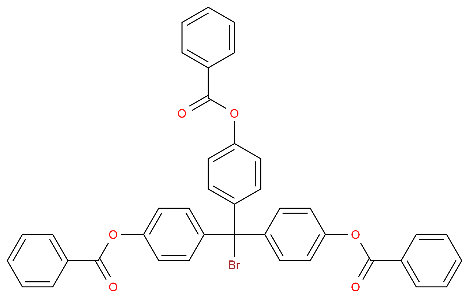 SMILES: c1ccc(cc1)C(=O)Oc1ccc(cc1)C(c1ccc(cc1)OC(=O)c1ccccc1)(c1ccc(cc1)OC(=O)c1ccccc1)Br Canonical SMILES: O=C(c1ccccc1)Oc1ccc(cc1)C(c1ccc(cc1)OC(=O)c1ccccc1)(c1ccc(cc1)OC(=O)c1ccccc1)Br InChI: InChI=1S/C40H27BrO6/c41-40(31-16-22-34(23-17-31)45-37(42)28-10-4-1-5-11-28,32-18-24-35(25-19-32)46-38(43)29-12-6-2-7-13-29)33-20-26-36(27-21-33)47-39(44)30-14-8-3-9-15-30/h1-27H InChIKey: PKXTVZCJOBWKIG-UHFFFAOYSA-N