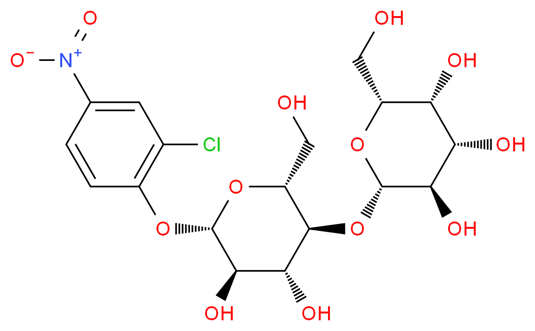 SMILES: c1cc(c(cc1[N+](=O)[O-])Cl)O[C@H]1[C@@H]([C@H]([C@@H]([C@H](O1)CO)O[C@H]1[C@@H]([C@H]([C@H]([C@H](O1)CO)O)O)O)O)O Canonical SMILES: OC[C@H]1O[C@@H](Oc2ccc(cc2Cl)[N+](=O)[O-])[C@@H]([C@H]([C@@H]1O[C@@H]1O[C@H](CO)[C@@H]([C@@H]([C@H]1O)O)O)O)O InChI: InChI=1S/C18H24ClNO13/c19-7-3-6(20(28)29)1-2-8(7)30-17-15(27)13(25)16(10(5-22)32-17)33-18-14(26)12(24)11(23)9(4-21)31-18/h1-3,9-18,21-27H,4-5H2/t9-,10-,11+,12+,13-,14-,15-,16-,17-,18+/m1/s1 InChIKey: RFGBZYLCQCJGOG-MUKCROHVSA-N