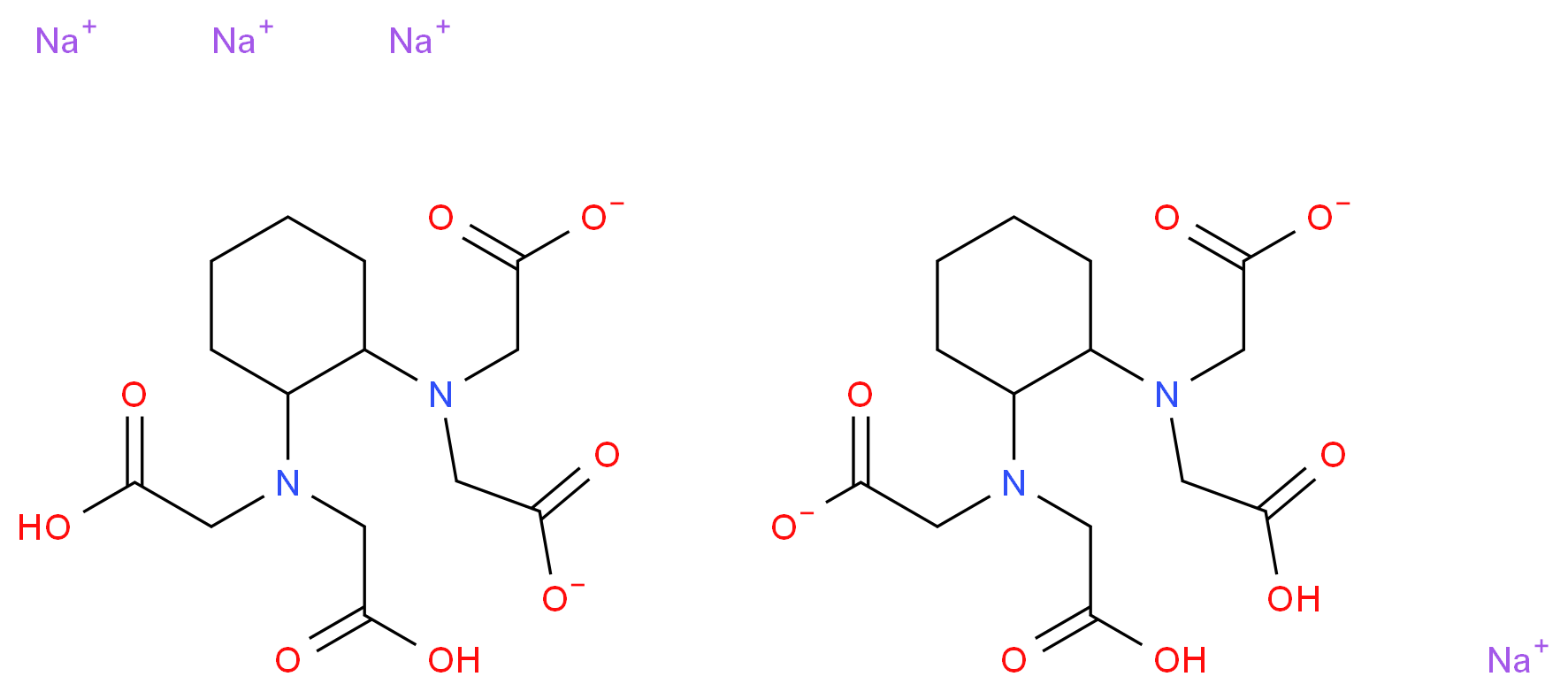 SMILES: C1CCC(C(C1)N(CC(=O)O)CC(=O)O)N(CC(=O)[O-])CC(=O)[O-].C1CCC(C(C1)N(CC(=O)O)CC(=O)[O-])N(CC(=O)O)CC(=O)[O-].[Na+].[Na+].[Na+].[Na+] Canonical SMILES: [O-]C(=O)CN(C1CCCCC1N(CC(=O)O)CC(=O)O)CC(=O)[O-].[O-]C(=O)CN(C1CCCCC1N(CC(=O)O)CC(=O)[O-])CC(=O)O.[Na+].[Na+].[Na+].[Na+] InChI: InChI=1S/2C14H22N2O8.4Na/c2*17-11(18)5-15(6-12(19)20)9-3-1-2-4-10(9)16(7-13(21)22)8-14(23)24;;;;/h2*9-10H,1-8H2,(H,17,18)(H,19,20)(H,21,22)(H,23,24);;;;/q;;4*+1/p-4 InChIKey: OMOCDZPKSQEHSN-UHFFFAOYSA-J