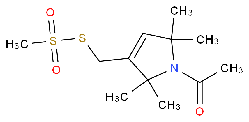 SMILES: C1=C(C(N(C1(C)C)C(=O)C)(C)C)CSS(=O)(=O)C Canonical SMILES: CC(=O)N1C(C)(C)C=C(C1(C)C)CSS(=O)(=O)C InChI: InChI=1S/C12H21NO3S2/c1-9(14)13-11(2,3)7-10(12(13,4)5)8-17-18(6,15)16/h7H,8H2,1-6H3 InChIKey: NHWXBVUAMMVKNN-UHFFFAOYSA-N