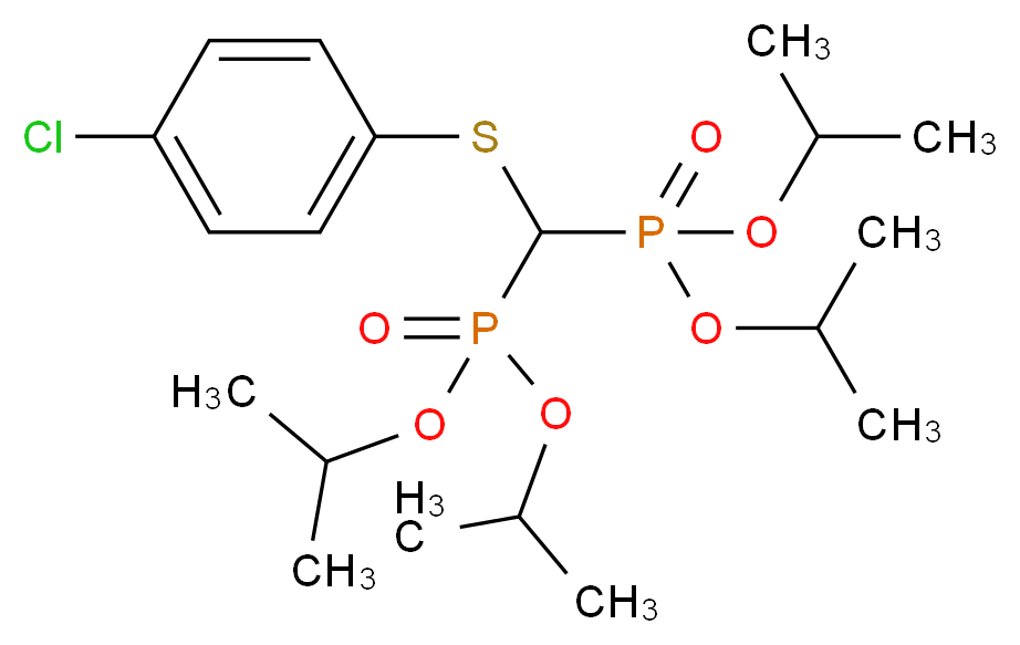 SMILES: C(Sc1ccc(cc1)Cl)(P(=O)(OC(C)C)OC(C)C)P(=O)(OC(C)C)OC(C)C Canonical SMILES: CC(OP(=O)(C(P(=O)(OC(C)C)OC(C)C)Sc1ccc(cc1)Cl)OC(C)C)C InChI: InChI=1S/C19H33ClO6P2S/c1-13(2)23-27(21,24-14(3)4)19(29-18-11-9-17(20)10-12-18)28(22,25-15(5)6)26-16(7)8/h9-16,19H,1-8H3 InChIKey: UHDQXYNMXUABLW-UHFFFAOYSA-N