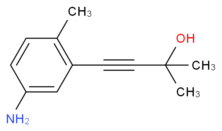 SMILES: c1cc(cc(c1C)C#CC(O)(C)C)N Canonical SMILES: CC(C#Cc1cc(N)ccc1C)(O)C InChI: InChI=1S/C12H15NO/c1-9-4-5-11(13)8-10(9)6-7-12(2,3)14/h4-5,8,14H,13H2,1-3H3 InChIKey: WVJFEHJVLBSYNP-UHFFFAOYSA-N