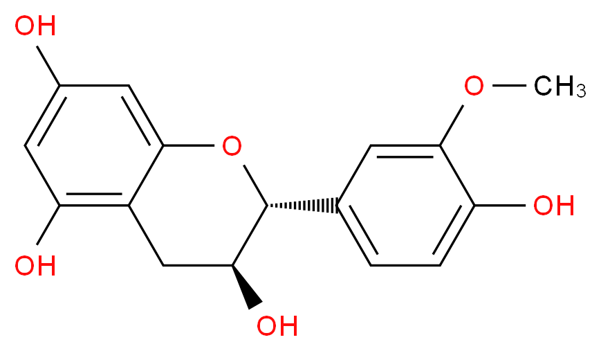 SMILES: c1(cc(c2c(c1)O[C@@H]([C@H](C2)O)c1ccc(c(c1)OC)O)O)O Canonical SMILES: COc1cc(ccc1O)[C@H]1Oc2cc(O)cc(c2C[C@@H]1O)O InChI: InChI=1S/C16H16O6/c1-21-15-4-8(2-3-11(15)18)16-13(20)7-10-12(19)5-9(17)6-14(10)22-16/h2-6,13,16-20H,7H2,1H3/t13-,16+/m0/s1 InChIKey: NJHJXXLBWQXMRO-XJKSGUPXSA-N