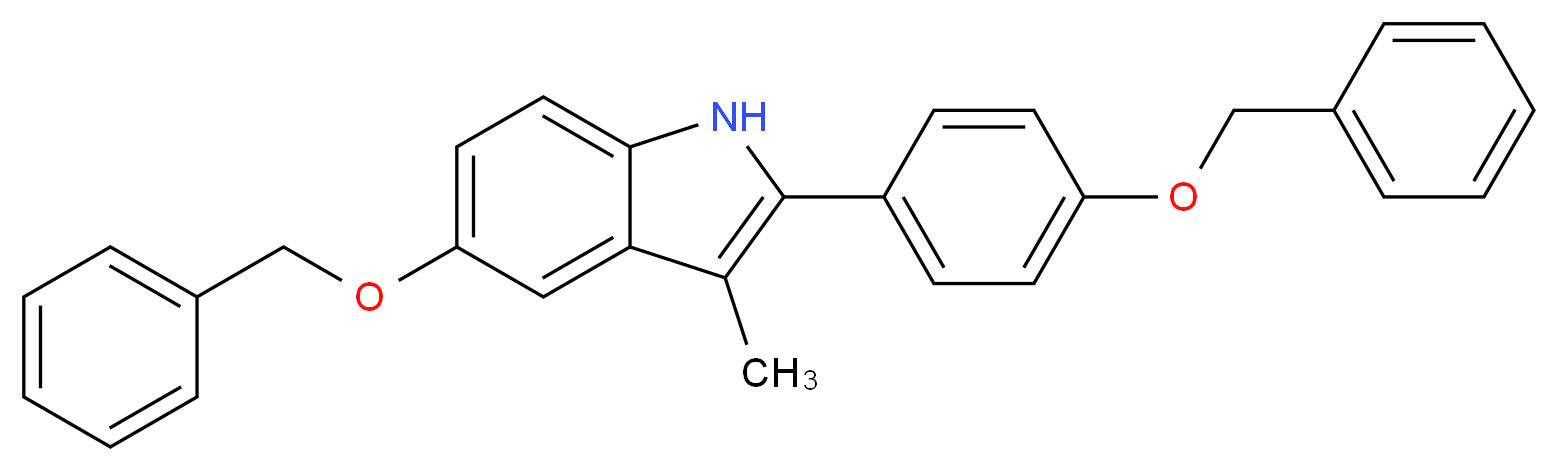 SMILES: c1c(cc2c(c1)[nH]c(c2C)c1ccc(cc1)OCc1ccccc1)OCc1ccccc1 Canonical SMILES: Cc1c([nH]c2c1cc(OCc1ccccc1)cc2)c1ccc(cc1)OCc1ccccc1 InChI: InChI=1S/C29H25NO2/c1-21-27-18-26(32-20-23-10-6-3-7-11-23)16-17-28(27)30-29(21)24-12-14-25(15-13-24)31-19-22-8-4-2-5-9-22/h2-18,30H,19-20H2,1H3 InChIKey: KRIJKJMYOVWRSJ-UHFFFAOYSA-N