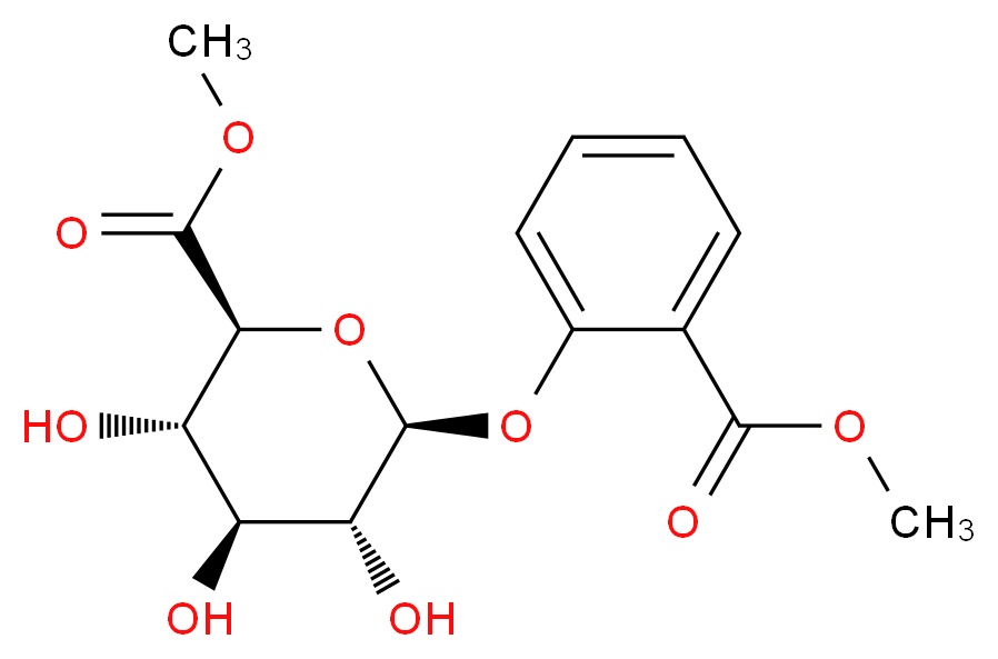 SMILES: O1[C@@H](Oc2ccccc2C(=O)OC)[C@@H](O)[C@H]([C@@H]([C@@H]1C(=O)OC)O)O Canonical SMILES: COC(=O)[C@@H]1O[C@@H](Oc2ccccc2C(=O)OC)[C@H]([C@H]([C@@H]1O)O)O InChI: InChI=1S/C15H18O9/c1-21-13(19)7-5-3-4-6-8(7)23-15-11(18)9(16)10(17)12(24-15)14(20)22-2/h3-6,9-12,15-18H,1-2H3/t9-,10-,11+,12-,15+/m0/s1 InChIKey: LDORTLMDVQBDPM-QKZHPOIUSA-N