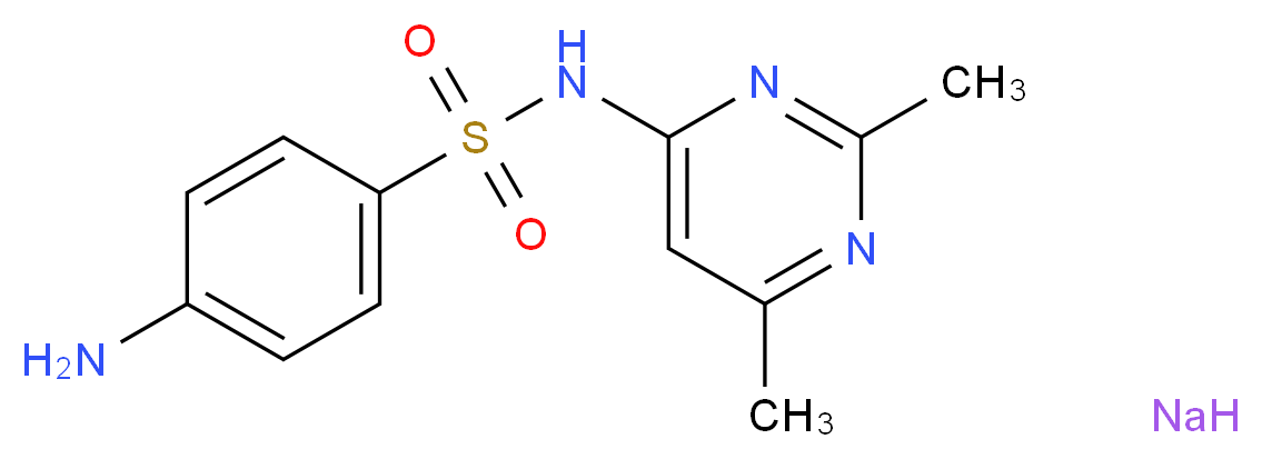 SMILES: c1cc(ccc1S(=O)(=O)Nc1cc(nc(n1)C)C)N.[Na] Canonical SMILES: Nc1ccc(cc1)S(=O)(=O)Nc1cc(C)nc(n1)C.[Na] InChI: InChI=1S/C12H14N4O2S.Na/c1-8-7-12(15-9(2)14-8)16-19(17,18)11-5-3-10(13)4-6-11;/h3-7H,13H2,1-2H3,(H,14,15,16); InChIKey: YWXFNHRLIKUAIF-UHFFFAOYSA-N