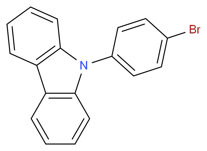 SMILES: n1(c2ccccc2c2ccccc12)c1ccc(cc1)Br Canonical SMILES: Brc1ccc(cc1)n1c2ccccc2c2c1cccc2 InChI: InChI=1S/C18H12BrN/c19-13-9-11-14(12-10-13)20-17-7-3-1-5-15(17)16-6-2-4-8-18(16)20/h1-12H InChIKey: XSDKKRKTDZMKCH-UHFFFAOYSA-N