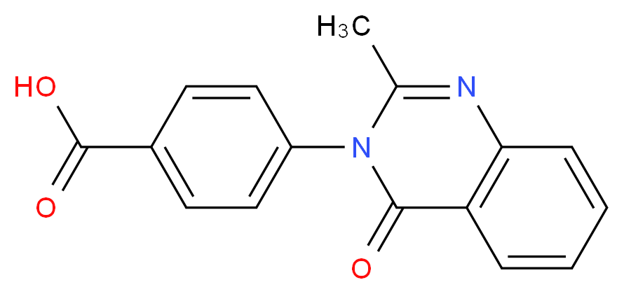 SMILES: n1(c(=O)c2c(nc1C)cccc2)c1ccc(C(=O)O)cc1 Canonical SMILES: OC(=O)c1ccc(cc1)n1c(C)nc2c(c1=O)cccc2 InChI: InChI=1S/C16H12N2O3/c1-10-17-14-5-3-2-4-13(14)15(19)18(10)12-8-6-11(7-9-12)16(20)21/h2-9H,1H3,(H,20,21) InChIKey: KZZXWFMSTZOYOO-UHFFFAOYSA-N