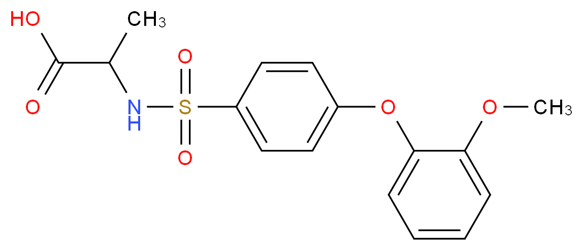 SMILES: CC(C(=O)O)NS(=O)(=O)c1ccc(cc1)Oc1ccccc1OC Canonical SMILES: COc1ccccc1Oc1ccc(cc1)S(=O)(=O)NC(C(=O)O)C InChI: InChI=1S/C16H17NO6S/c1-11(16(18)19)17-24(20,21)13-9-7-12(8-10-13)23-15-6-4-3-5-14(15)22-2/h3-11,17H,1-2H3,(H,18,19) InChIKey: QUWHLOBHPRYVHJ-UHFFFAOYSA-N