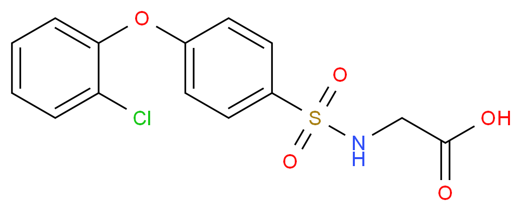 SMILES: c1ccc(c(c1)Oc1ccc(cc1)S(=O)(=O)NCC(=O)O)Cl Canonical SMILES: OC(=O)CNS(=O)(=O)c1ccc(cc1)Oc1ccccc1Cl InChI: InChI=1S/C14H12ClNO5S/c15-12-3-1-2-4-13(12)21-10-5-7-11(8-6-10)22(19,20)16-9-14(17)18/h1-8,16H,9H2,(H,17,18) InChIKey: OUJVPHDKPKCGPV-UHFFFAOYSA-N