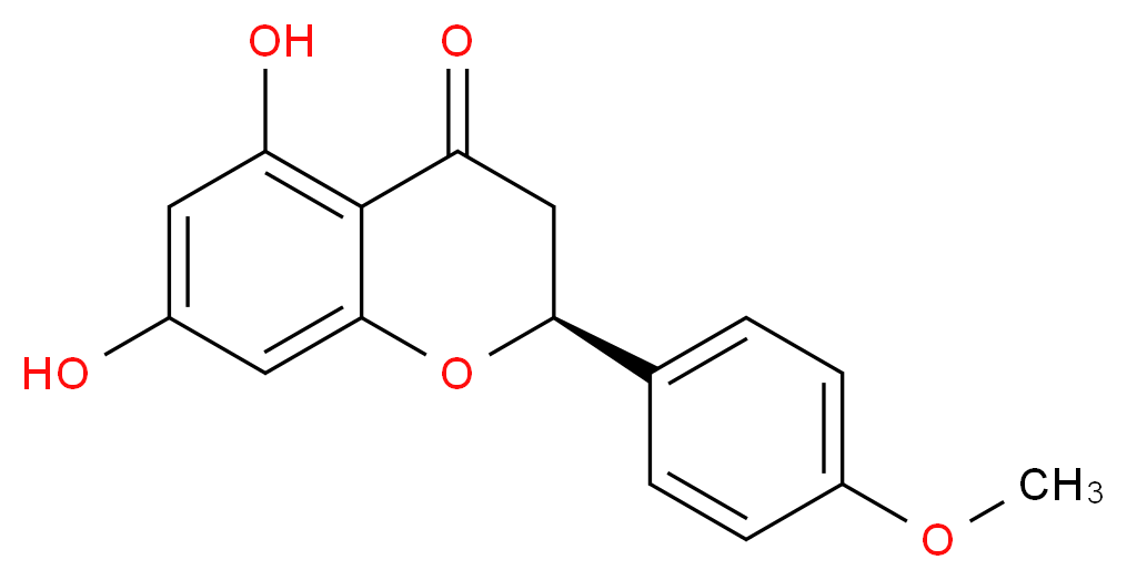SMILES: c1(cc(c2c(c1)O[C@@H](CC2=O)c1ccc(cc1)OC)O)O Canonical SMILES: COc1ccc(cc1)[C@@H]1CC(=O)c2c(O1)cc(cc2O)O InChI: InChI=1S/C16H14O5/c1-20-11-4-2-9(3-5-11)14-8-13(19)16-12(18)6-10(17)7-15(16)21-14/h2-7,14,17-18H,8H2,1H3/t14-/m0/s1 InChIKey: HMUJXQRRKBLVOO-AWEZNQCLSA-N