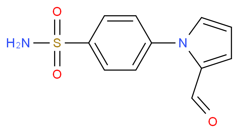 SMILES: S(=O)(=O)(c1ccc(n2c(ccc2)C=O)cc1)N Canonical SMILES: O=Cc1cccn1c1ccc(cc1)S(=O)(=O)N InChI: InChI=1S/C11H10N2O3S/c12-17(15,16)11-5-3-9(4-6-11)13-7-1-2-10(13)8-14/h1-8H,(H2,12,15,16) InChIKey: GLIUQFSIKLMRCN-UHFFFAOYSA-N