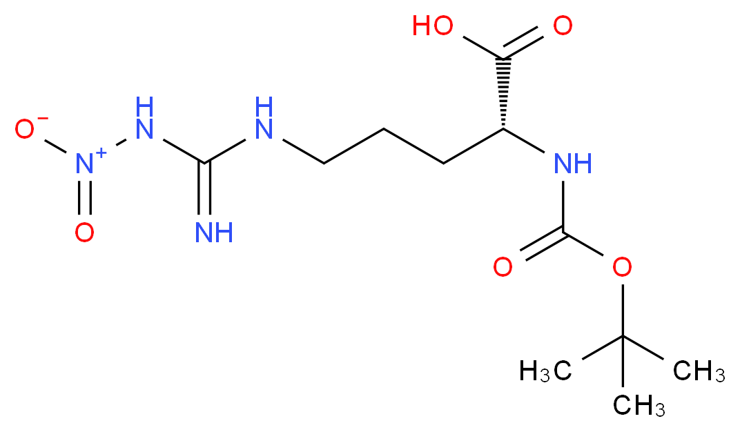 SMILES: N(C(=N)NCCC[C@H](C(=O)O)NC(=O)OC(C)(C)C)[N+](=O)[O-] Canonical SMILES: N=C(N[N+](=O)[O-])NCCC[C@H](C(=O)O)NC(=O)OC(C)(C)C InChI: InChI=1S/C11H21N5O6/c1-11(2,3)22-10(19)14-7(8(17)18)5-4-6-13-9(12)15-16(20)21/h7H,4-6H2,1-3H3,(H,14,19)(H,17,18)(H3,12,13,15)/t7-/m1/s1 InChIKey: OZSSOVRIEPAIMP-SSDOTTSWSA-N