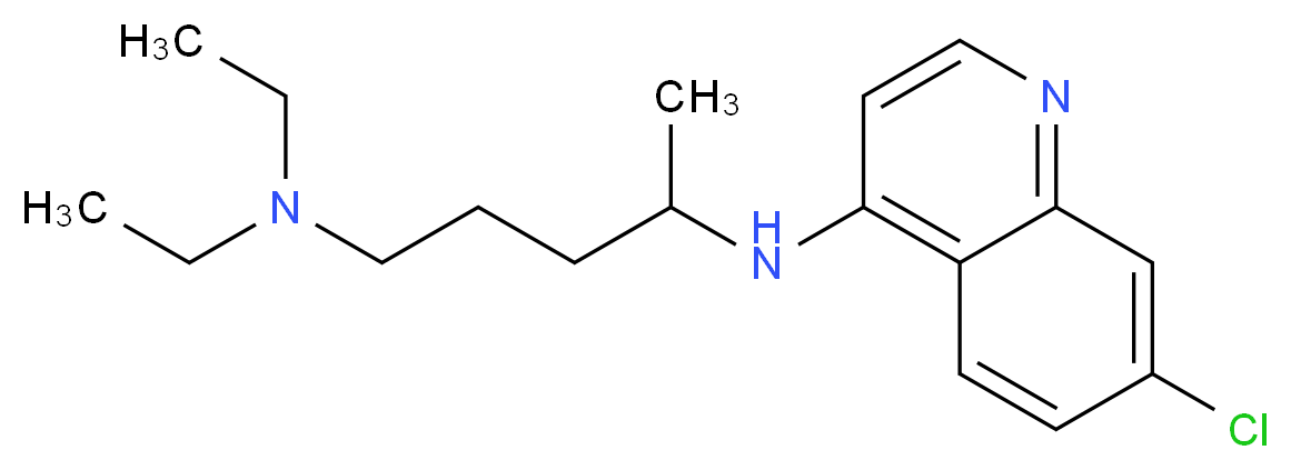 SMILES: Clc1cc2nccc(NC(CCCN(CC)CC)C)c2cc1 Canonical SMILES: CCN(CCCC(Nc1ccnc2c1ccc(c2)Cl)C)CC InChI: InChI=1S/C18H26ClN3/c1-4-22(5-2)12-6-7-14(3)21-17-10-11-20-18-13-15(19)8-9-16(17)18/h8-11,13-14H,4-7,12H2,1-3H3,(H,20,21) InChIKey: WHTVZRBIWZFKQO-UHFFFAOYSA-N