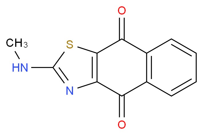 SMILES: CNc1sc2c(n1)C(=O)c1c(C2=O)cccc1 Canonical SMILES: CNc1nc2c(s1)C(=O)c1c(C2=O)cccc1 InChI: InChI=1S/C12H8N2O2S/c1-13-12-14-8-9(15)6-4-2-3-5-7(6)10(16)11(8)17-12/h2-5H,1H3,(H,13,14) InChIKey: DDPGKZSOCTUHOO-UHFFFAOYSA-N