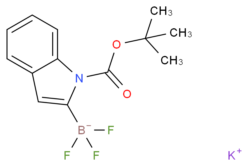 SMILES: c1ccc2c(c1)n(c(c2)[B-](F)(F)F)C(=O)OC(C)(C)C.[K+] Canonical SMILES: O=C(n1c2ccccc2cc1[B-](F)(F)F)OC(C)(C)C.[K+] InChI: InChI=1S/C13H14BF3NO2.K/c1-13(2,3)20-12(19)18-10-7-5-4-6-9(10)8-11(18)14(15,16)17;/h4-8H,1-3H3;/q-1;+1 InChIKey: IIPRPASPOXMUTF-UHFFFAOYSA-N