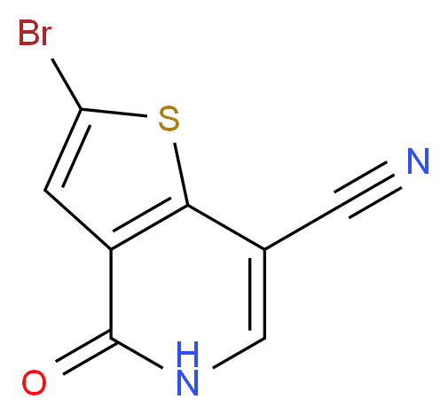 SMILES: c12c(c(=O)[nH]cc1C#N)cc(s2)Br Canonical SMILES: N#Cc1c[nH]c(=O)c2c1sc(c2)Br InChI: InChI=1S/C8H3BrN2OS/c9-6-1-5-7(13-6)4(2-10)3-11-8(5)12/h1,3H,(H,11,12) InChIKey: FIAFOJCIZMGXIV-UHFFFAOYSA-N