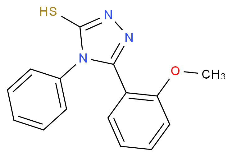 SMILES: n1c(c2c(cccc2)OC)n(c2ccccc2)c(n1)S Canonical SMILES: COc1ccccc1c1nnc(n1c1ccccc1)S InChI: InChI=1S/C15H13N3OS/c1-19-13-10-6-5-9-12(13)14-16-17-15(20)18(14)11-7-3-2-4-8-11/h2-10H,1H3,(H,17,20) InChIKey: QFYMYTCWMJUZSY-UHFFFAOYSA-N
