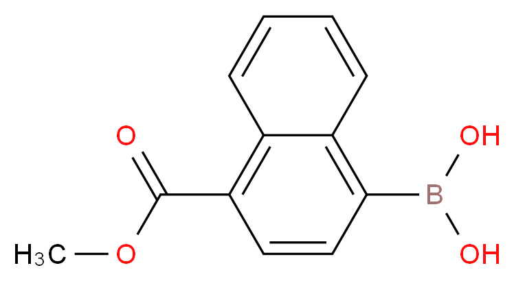 SMILES: B(c1ccc(c2ccccc12)C(=O)OC)(O)O Canonical SMILES: COC(=O)c1ccc(c2c1cccc2)B(O)O InChI: InChI=1S/C12H11BO4/c1-17-12(14)10-6-7-11(13(15)16)9-5-3-2-4-8(9)10/h2-7,15-16H,1H3 InChIKey: BIPIDWXSOARJHM-UHFFFAOYSA-N