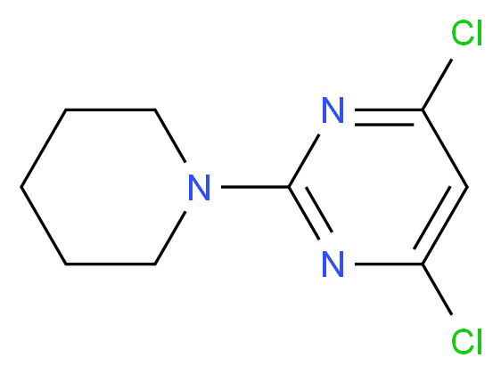 SMILES: c1c(nc(nc1Cl)N1CCCCC1)Cl Canonical SMILES: Clc1nc(nc(c1)Cl)N1CCCCC1 InChI: InChI=1S/C9H11Cl2N3/c10-7-6-8(11)13-9(12-7)14-4-2-1-3-5-14/h6H,1-5H2 InChIKey: VPXXDXQRYCWVSH-UHFFFAOYSA-N