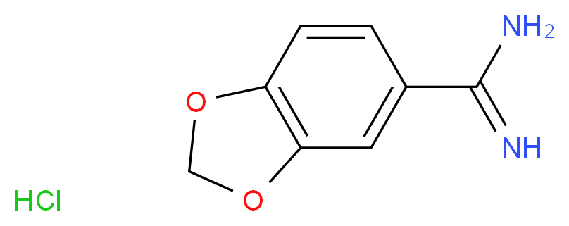 SMILES: Cl.c12OCOc1cc(cc2)C(=N)N Canonical SMILES: NC(=N)c1ccc2c(c1)OCO2.Cl InChI: InChI=1S/C8H8N2O2.ClH/c9-8(10)5-1-2-6-7(3-5)12-4-11-6;/h1-3H,4H2,(H3,9,10);1H InChIKey: YCQCHWGWPJUJEW-UHFFFAOYSA-N
